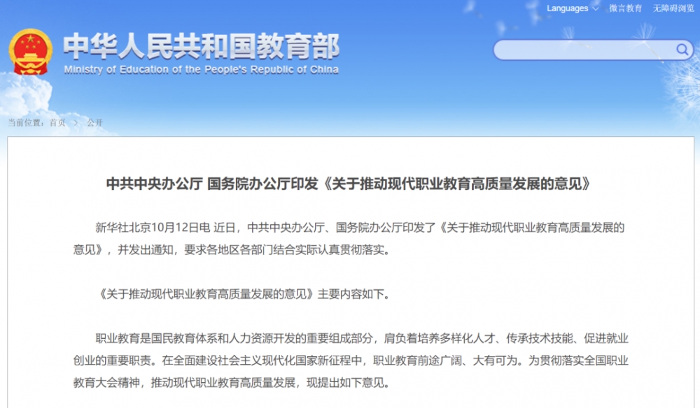 1.教育部. 中共中央办公厅 国务院办公厅印发《关于推动现代职业教育高质量发展的意见》. (2021-10-12). http://www.moe.gov.cn/jyb_xxgk/moe_1777/moe_1778/202110/t20211012_571737.html